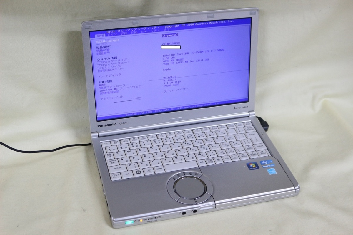 - ジャンク品ノートパソコン Panasonic Let's note CF-NX1 Corei5 メモリ4GB HDD無 12.1inchワイド 起動確認済 代引き可