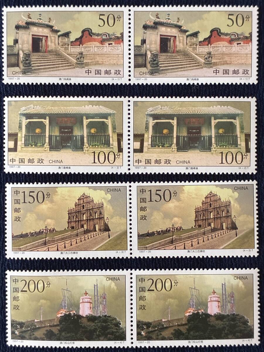 - 新中国切手ー未使用 1997-20T マカオ古跡 4種完ペア