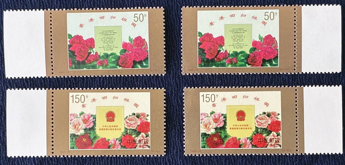 - 新中国切手ー未使用 1997-10J 香港祖国復帰 2種完2セット 耳付き 1997-10JM 香港祖国復帰小型シート 2シート