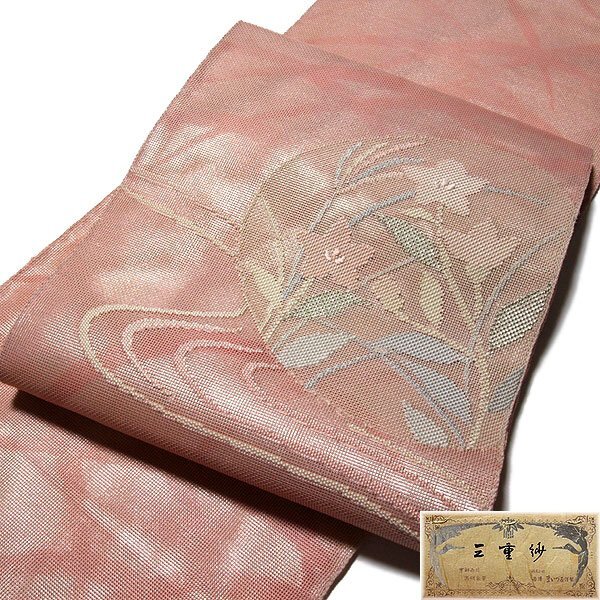 > [和楽屋] 訳あり■「夏物 三重紗」引箔 涼しげな 流水に桔梗 京都西陣織「老舗 西陣まいづる謹製」夏帯 紗 最高級 正絹 本袋帯■