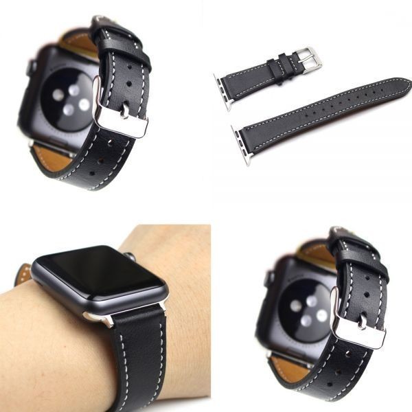 - Apple Watch バンド 41mm 40mm 38mm 黒 バンド 本革 ビジネス風 アップル ウォッチ 男性 ベルト レザー製 ブラック 人気 高級