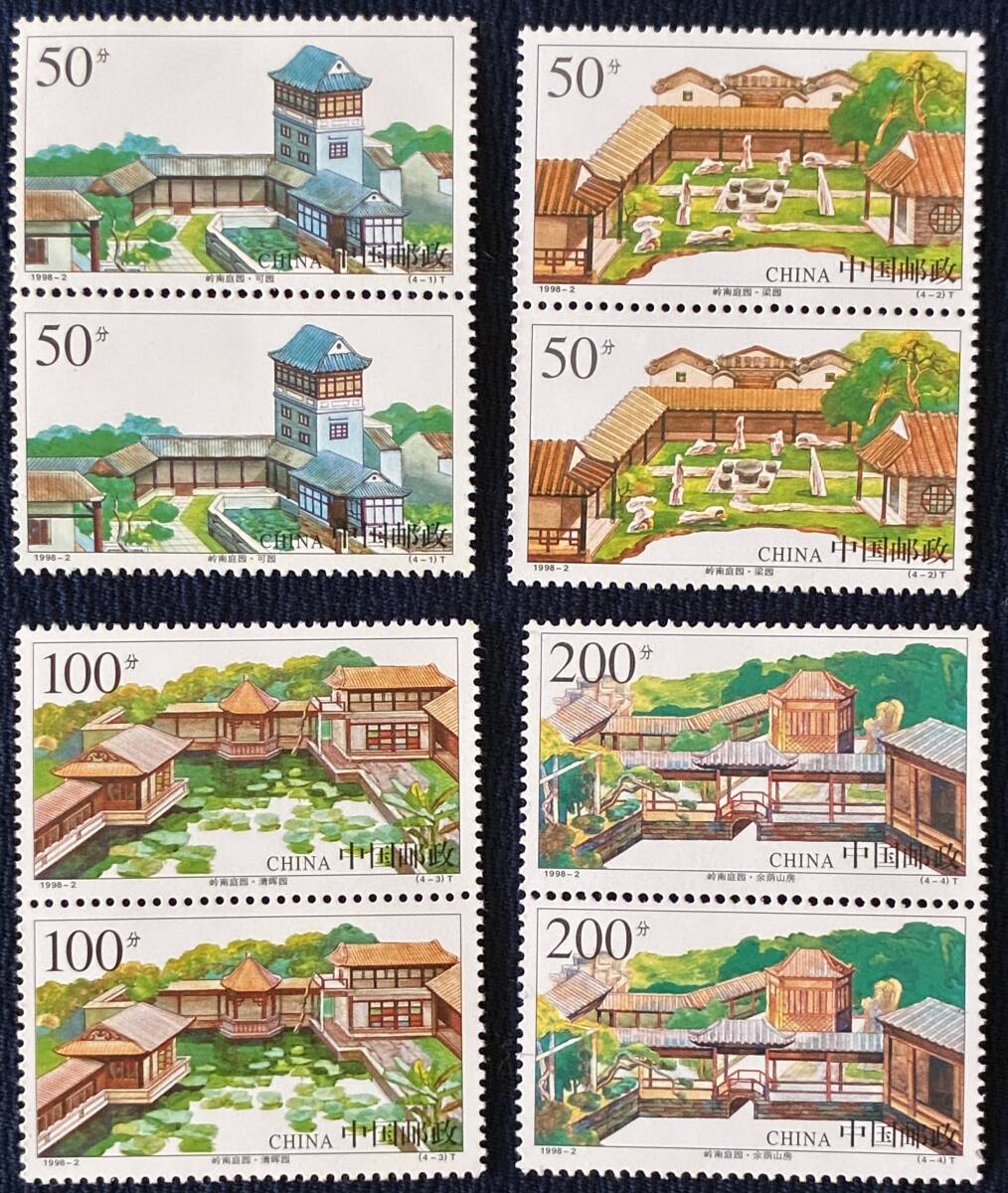 - 新中国切手ー未使用 1998-2T 嶺南庭園 4種完 ペア