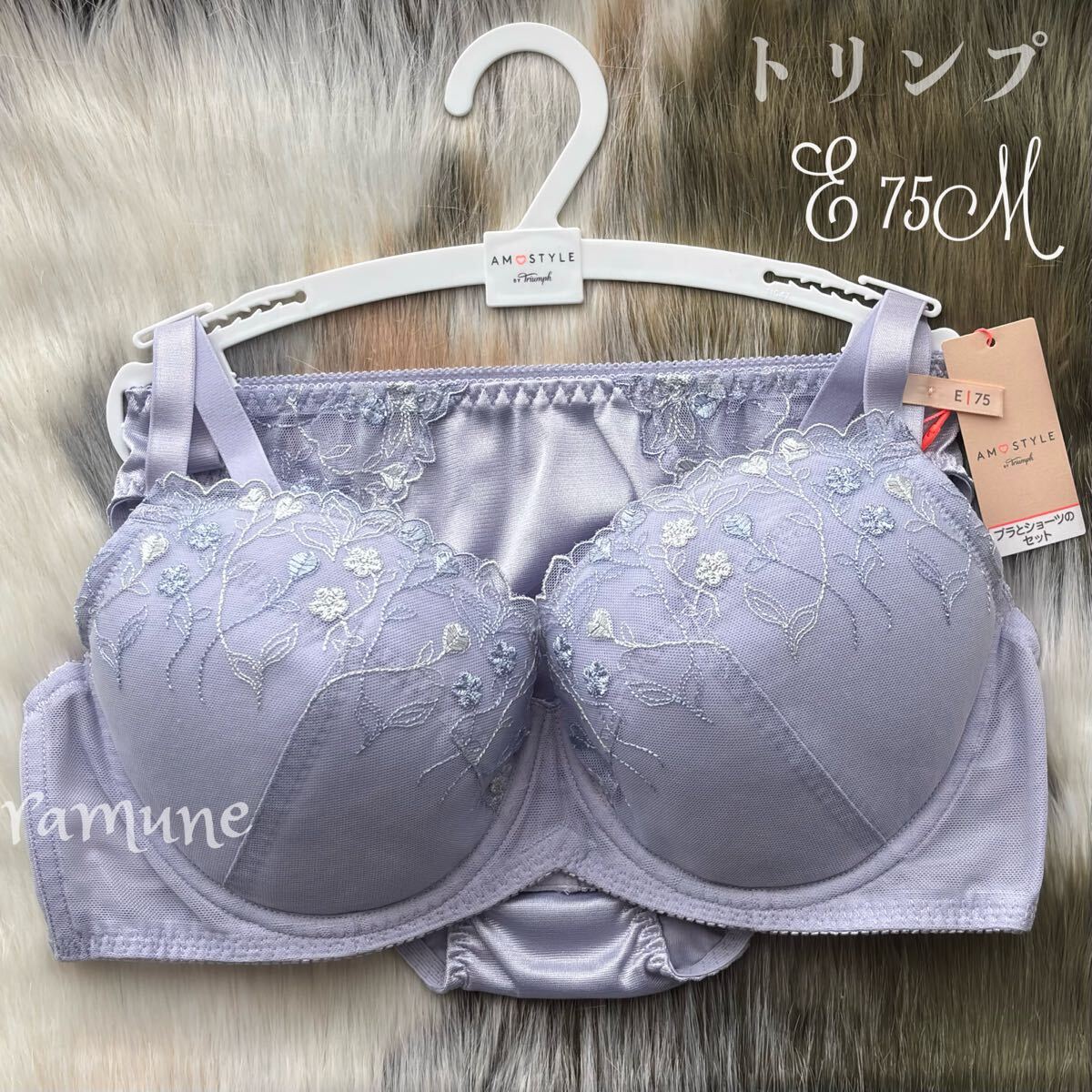 - 【トリンプ*E75M*薄紫系】新品 Triumph ブラ&ショーツセット エントリーコレクション パッド付き 花柄刺しゅう かわいいブラ Eカップ