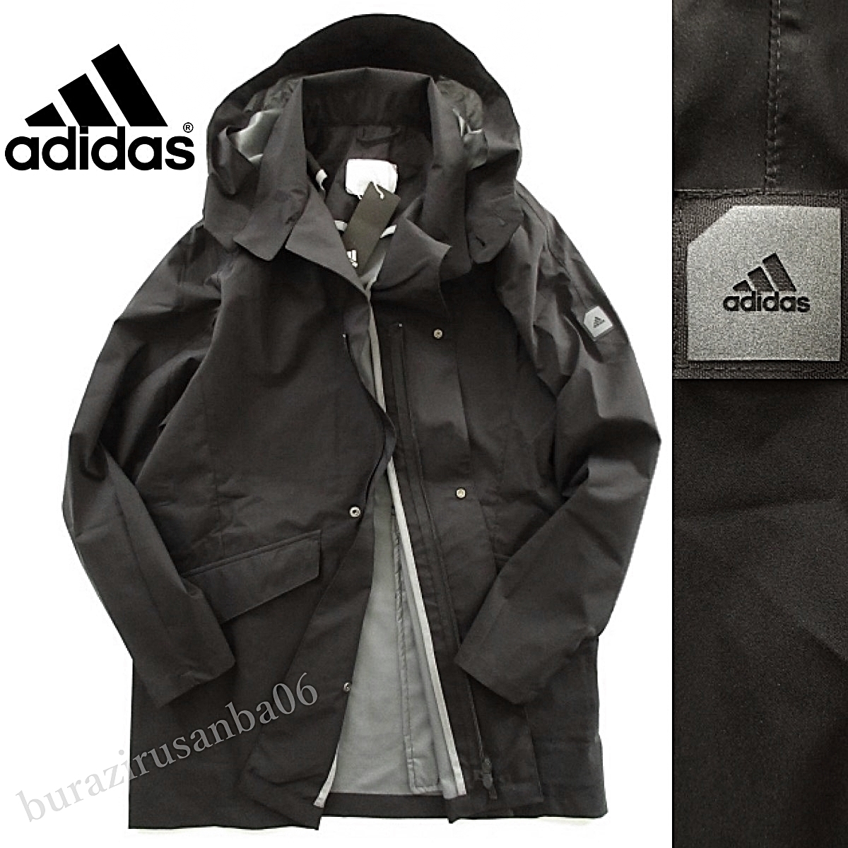 > メンズ M◆未使用 定価24,200円 adidas アディダス 防水仕様 ストレッチ ミドルコート トレンチコートスタイル HB1611 黒 ブラック