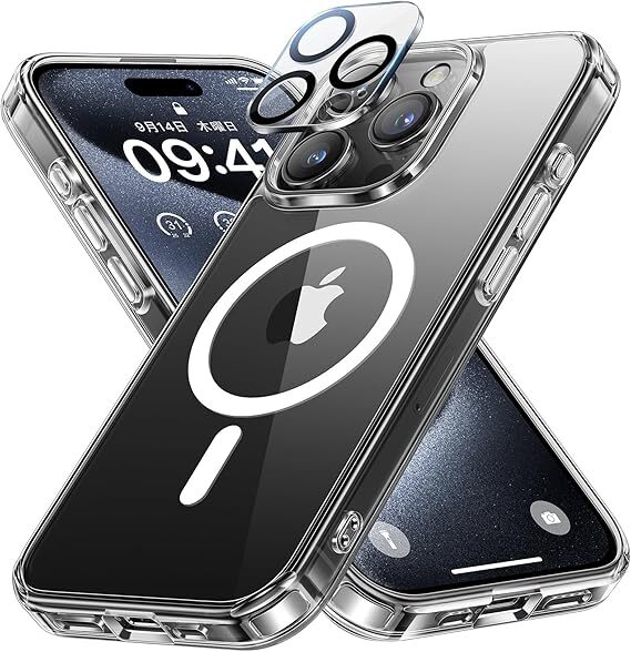 - NIMASO MagSafe対応 iPhone15ProMax用 ケース+カメラフィルム (1枚) クリア 保護ケース 米軍MIL規格 1セット(氷星シリーズ) NSM23K904