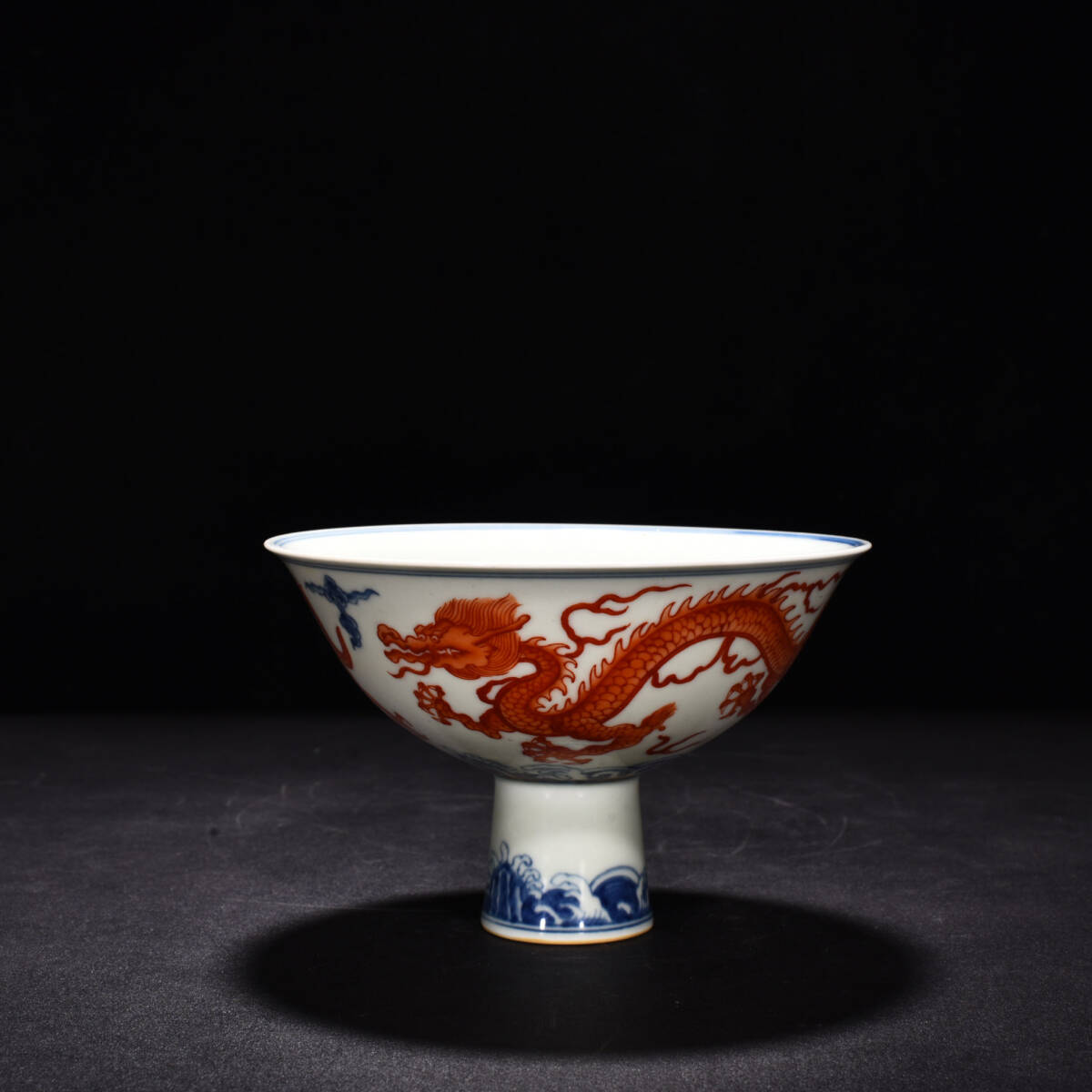 - TB143■中国古玩 唐物 明成化 青花礬紅 麒麟紋高足碗 時代物 極上品■高さ10cm・直径16.5cm■
