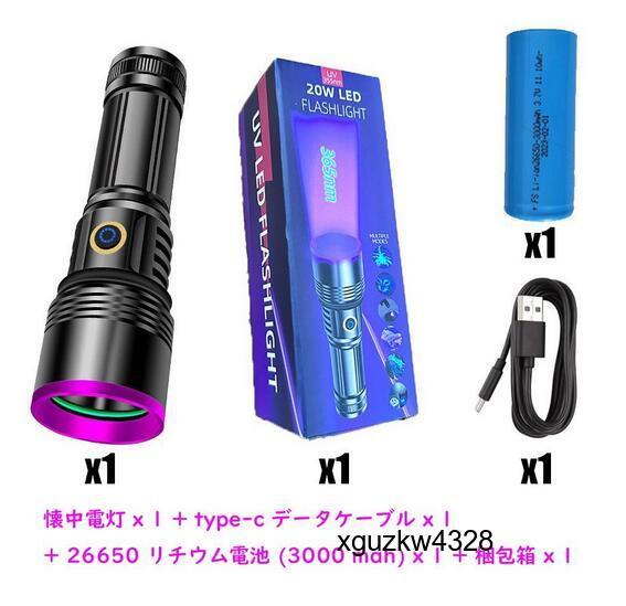 - 紫外線ライト ブラックライト アニサキスライト 26650電池付 365nm 強力 3000mah大容量 USB充電式 防水 鑑定 釣り真贋 鉱物用