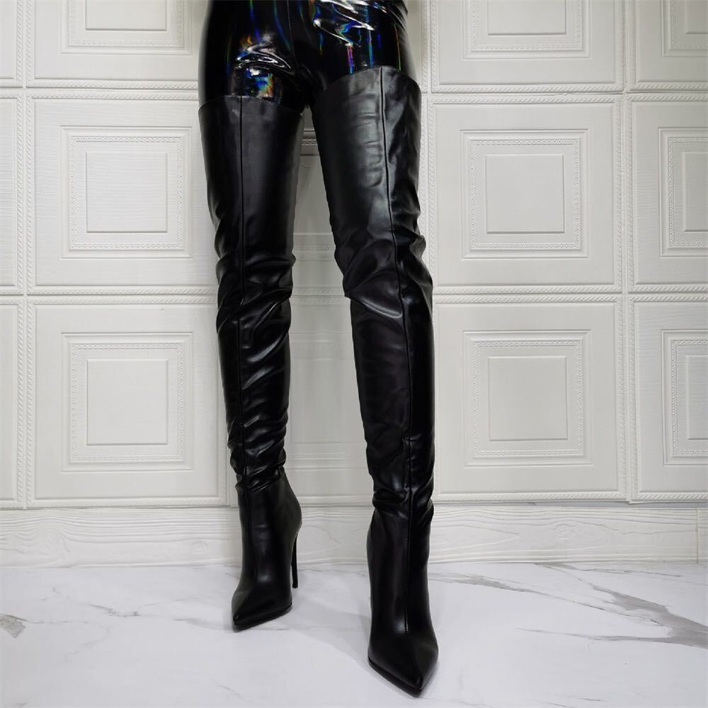 > コスプレ ハイヒール サイハイブーツ ニーハイブーツ ピンヒール 美脚 レディース シューズ 新品12cm ハイヒール