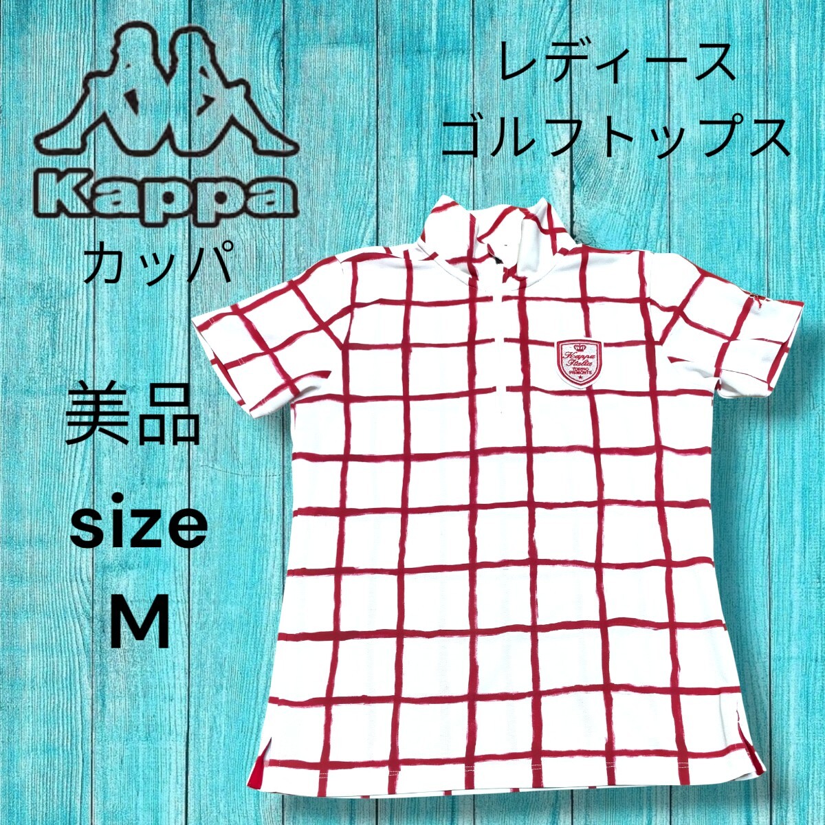 > 新品同様 Kappa カッパ 半袖 ゴルフ ハイネックシャツ 赤い格子柄 レディース М 吸水速乾 ゴルフウェア スポーツウェア