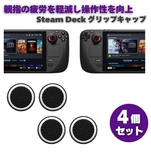 > 4個セット Steam Deck コントローラー 3D アナログ ジョイスティック 親指 サム グリップ キャップ カバー ブラック x ホワイト G305