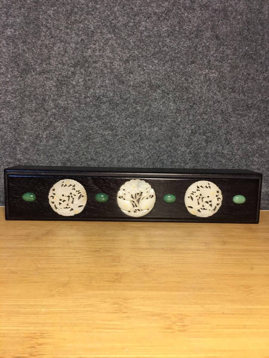 - 蔵友旧蔵出 紫檀木製 細密彫 玉石嵌 扇子盒 希少珍品 貴重品 置物 古賞物 中国古玩 中国古美術品