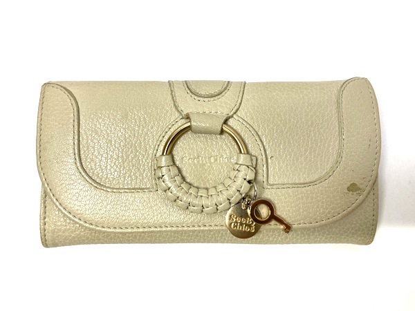 > 【即決】See By Chloe シーバイクロエ ハナ 二つ折り長財布 レザー アイボリー ゴールド金具 02 20 52 65