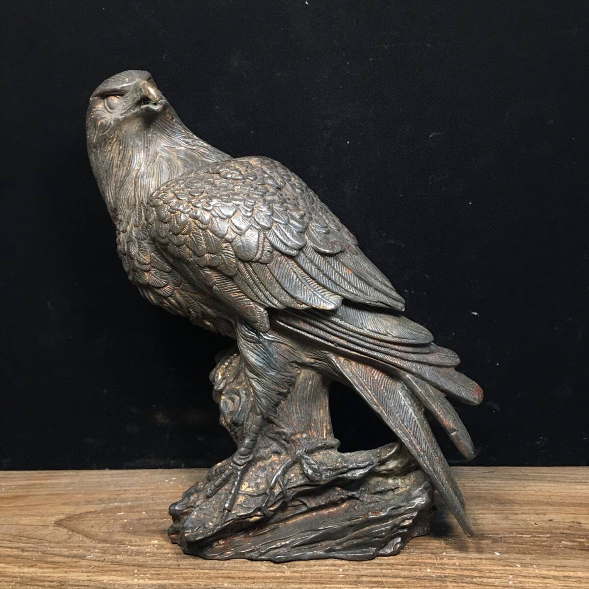 - 清時代 古銅彫 鷹 大展宏図 稀少珍品 文案 置物 置物擺件 時代物 古董品 骨董 旧家藏出 唐物 中国古玩 古美術