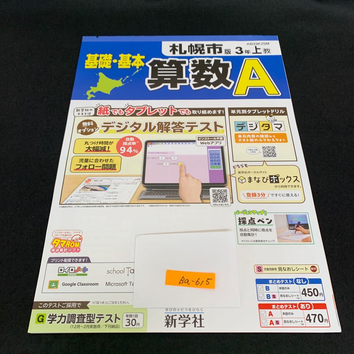 - Ba-615/3年生/上/札幌市版/新学社/小学生 国語 算数 英語 社会 理科 漢字 家庭科 テキスト テスト用紙 教材 文章問題 計算/L7/706003