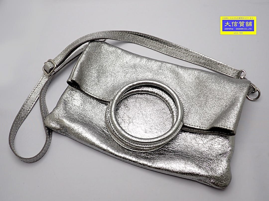 > LAURA DI MAGGIO ローラディマッジオ 2WAY ショルダーバッグ ポーチ付き シルバーメタリック 中古B 【送料無料】 A-8870
