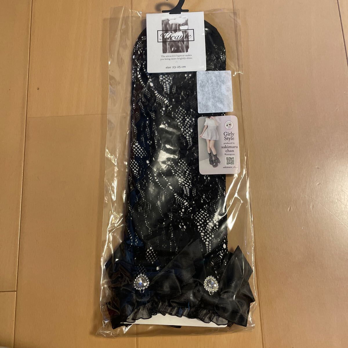 - 送料無料 新品 Girly Style リボン付きソックス sakimaru chan 黒ブラック 23-25cm 送料込み