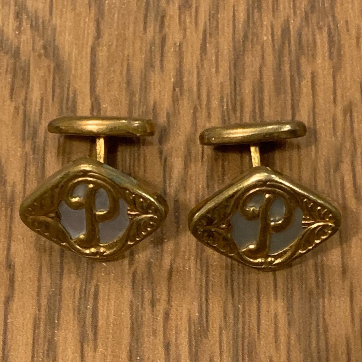 - 送料無料 US ヴィンテージ カフリンクス カフスボタン 菱形 白蝶貝 P