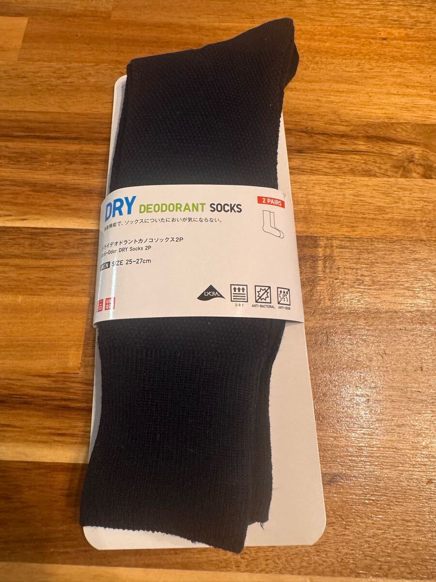 - ユニクロ ドライデオドラントカノコソックス 紳士靴下 2足組 25-27cm 消臭 ドライ ネイビー 紺色