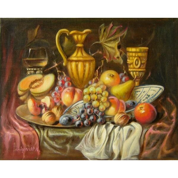 - ヨーロッパ絵画 肉筆油絵 (額縁付きで納品対応可) サイズF6号 レインプレヒト作 「静物」