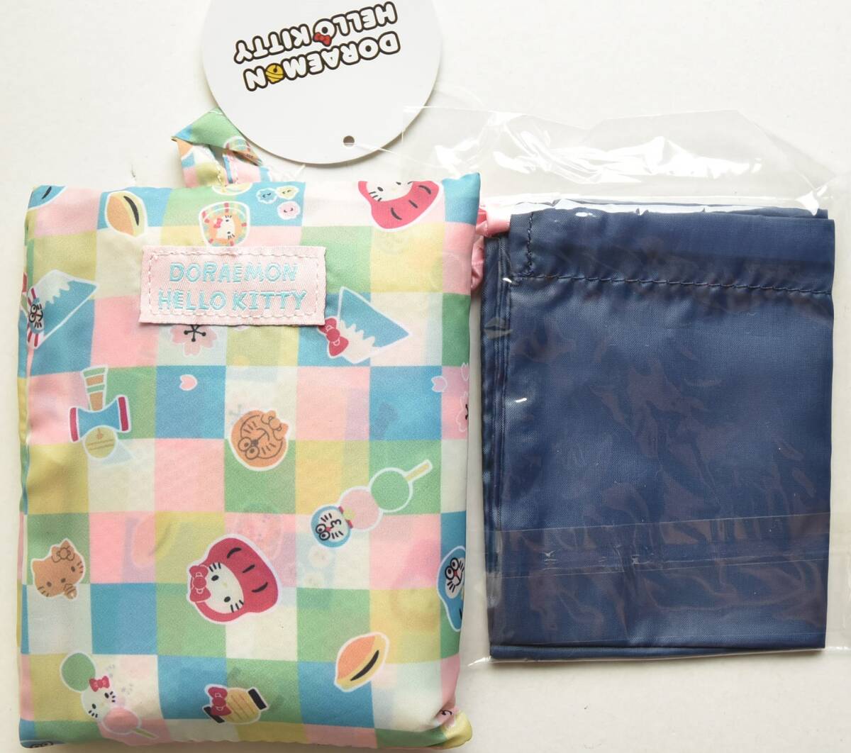> ドラえもん×ハローキティ エコバッグ 買い物バッグ 折りたたみ収納ケースM 未使用 レア品 超レア サンリオ