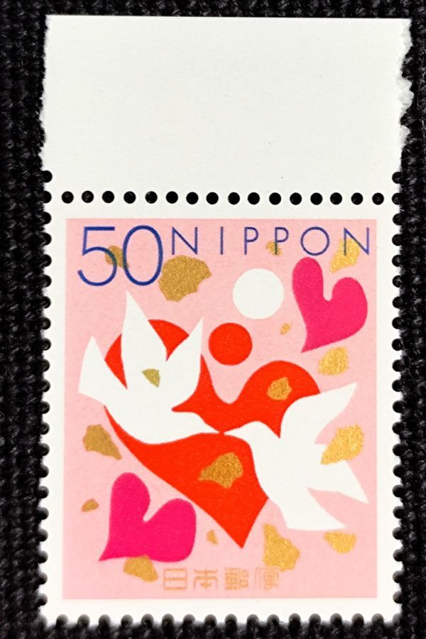 - [25060337] 普通切手【第5次慶弔切手】単片 慶事用「ハート 鳩」50円 1999年年発行 美品