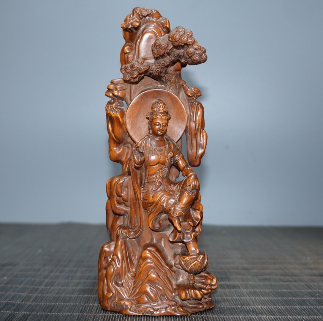 - 【超珍館蔵】黄楊木製 細密彫 自在觀音像 仏像 宗教 仏教古美術 供養品 古賞物 古董品 古美術品 時代物 旧家蔵出 稀少珍蔵品