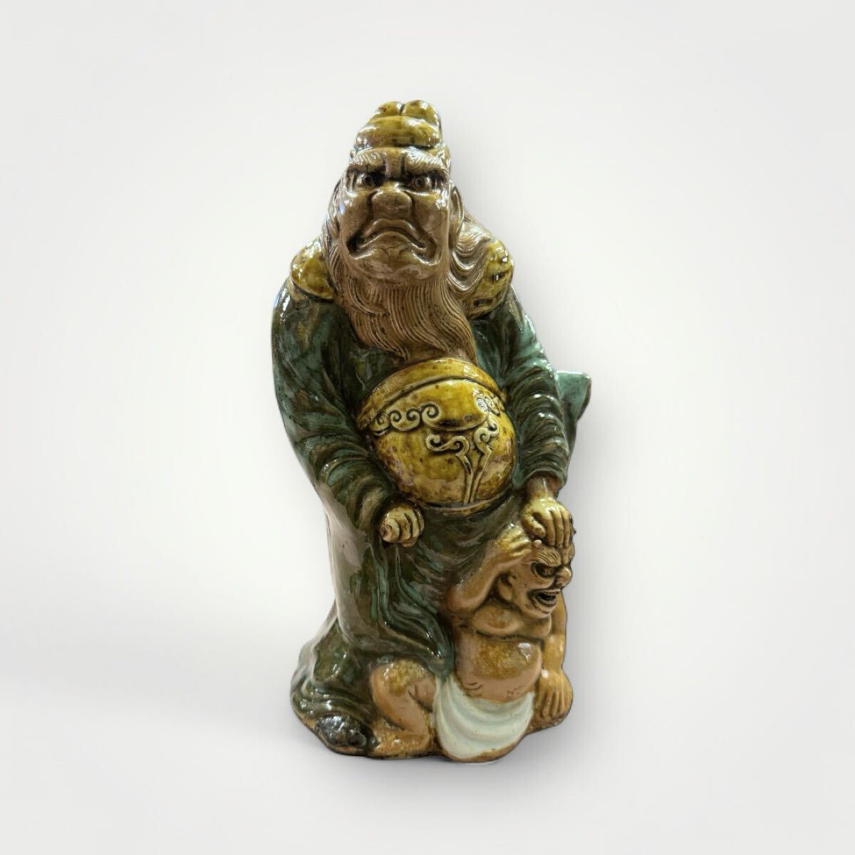 - 【NEOJI】古長与 長与焼 鍾馗様の小鬼退治置物 時代物 古玩