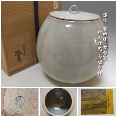 - 【T-420】讃岐 富田焼 吉金窯 紀太理光 青磁水指 共箱付 茶道具