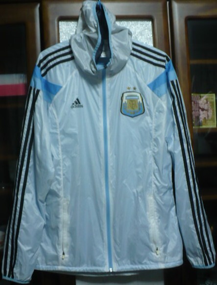 > 完売品 美品 adidas【アディダスジャパン(株)】製2014アルゼンチン代表アンセムウーブンジャケット(上のみ)O 白×水色 ブラジルW杯時