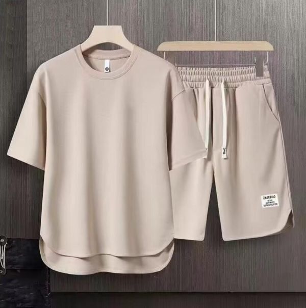 > 美品 * 男性用上下セットアップ 大きいサイズ メンズ ジャージ スウェット 半袖Tシャツハーフパンツスポーツウェア トレーナー * 杏