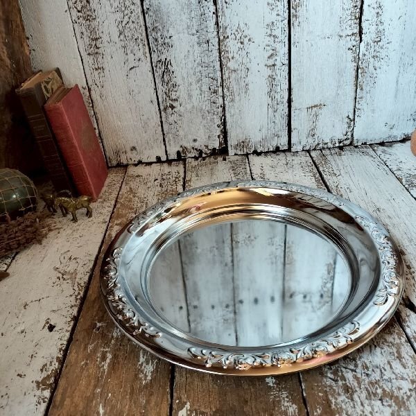 - 70-80s ヴィンテージ 未使用 ステンレス ラウンド トレイ レトロ モダン トレー お盆 シンプル ビンテージ アンティーク 古道具