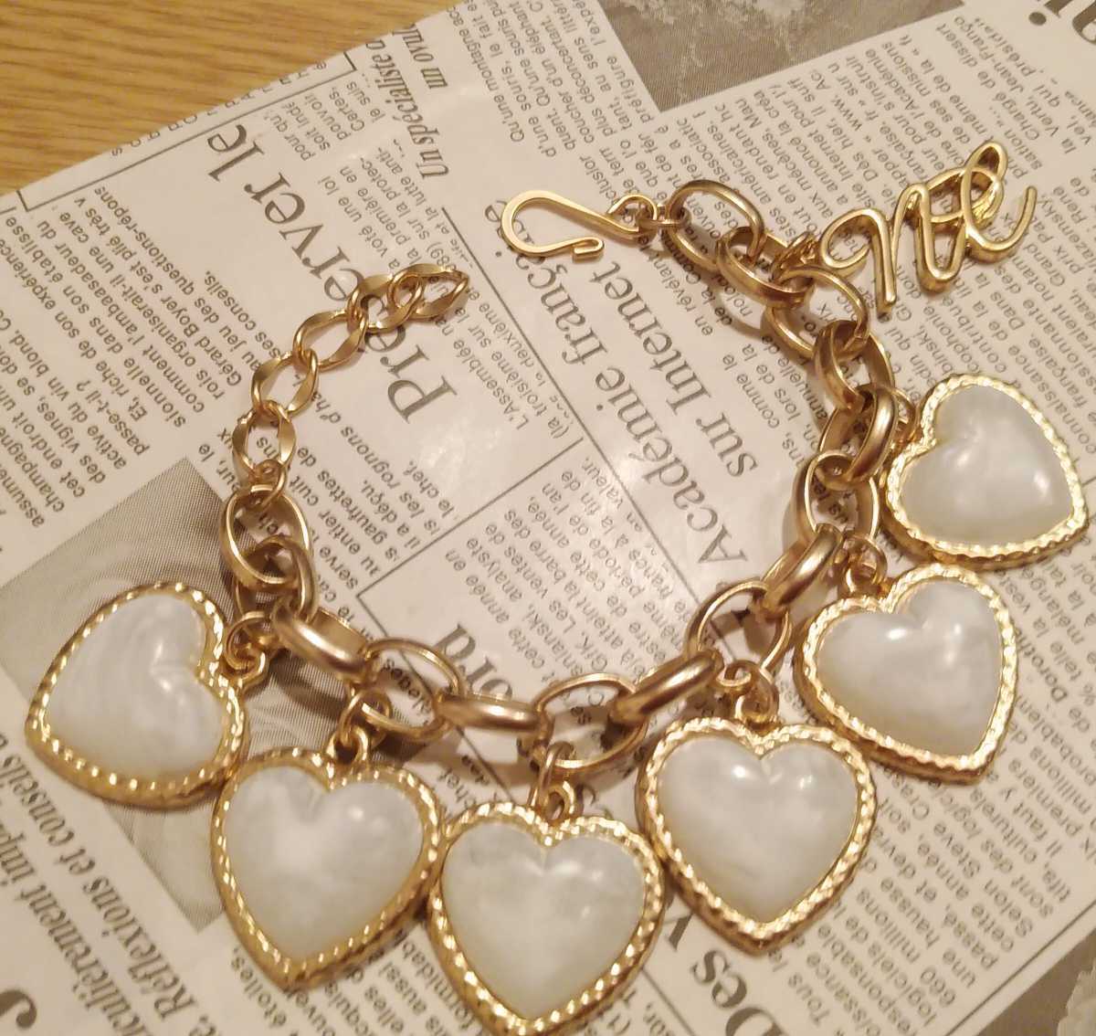 - 即決☆未使用☆定価8925円☆ノースコーナー ゴールドカラー ガーリー ホワイト ハート ブレスレット♪定形外180円☆