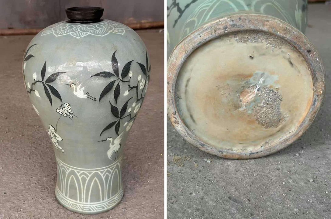 - ■観心・時代旧蔵■C6519『朝鮮時代旧蔵』朝鮮古陶 朝鮮古美術 高麗磁 古高麗 李朝 高麗青磁花卉紋梅瓶