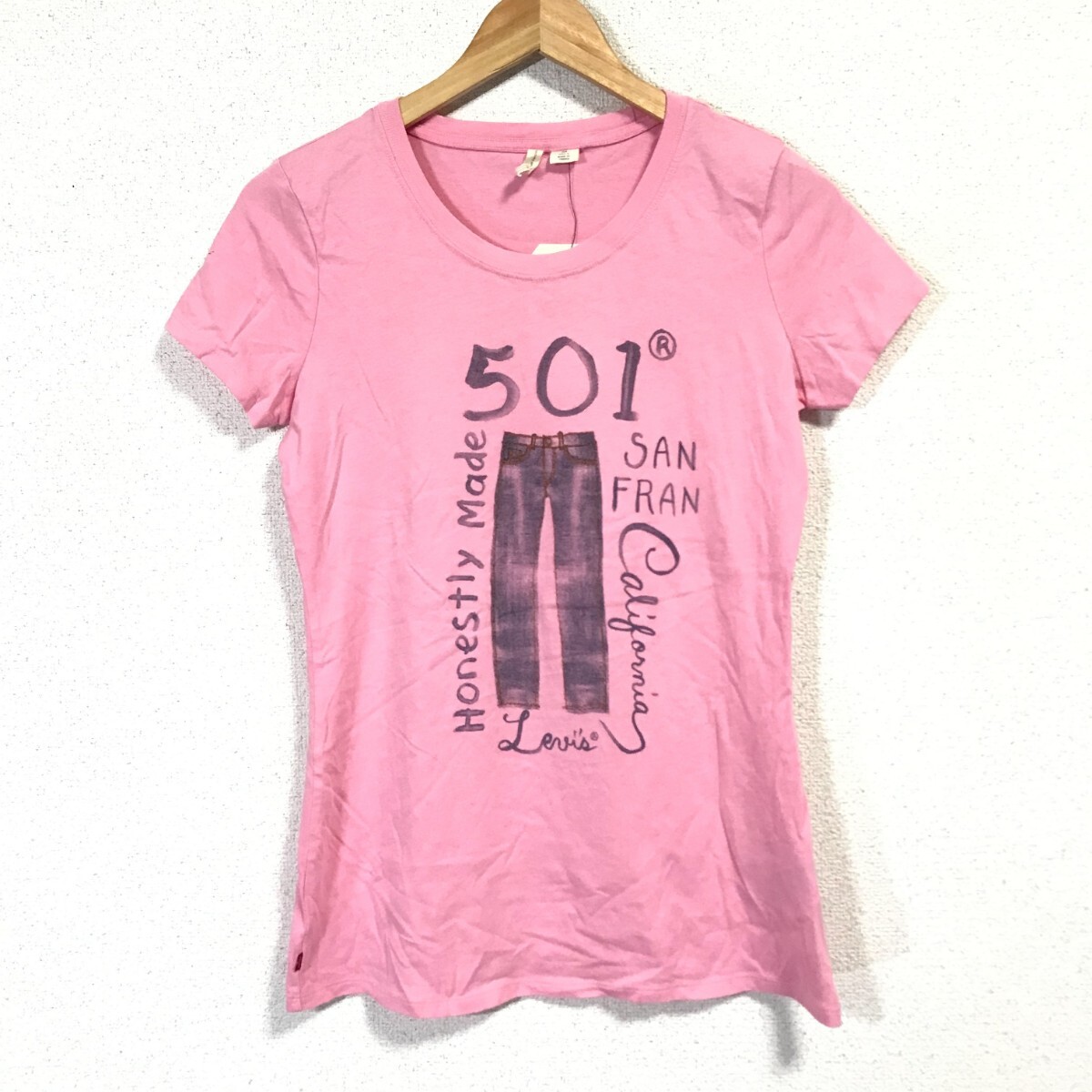 > h3048dL タグ付未使用品 Levi's リーバイス サイズM 半袖Tシャツ カットソー ピンク Levi's 501 デニムデザイン アメカジ