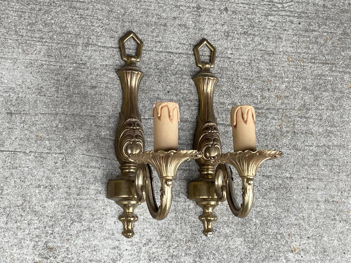 > 11. 2個セット!フランスアンティーク ランプ ブラケット ブロンズ 1灯 キャンドル 照明 ライト ウォール 蚤の市 店舗 什器 カフェ 美容室