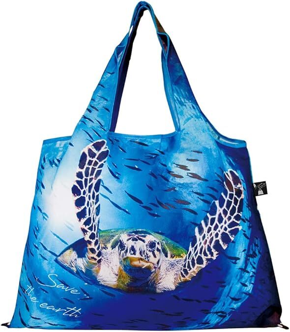 - アニマル柄 2WAY エコバッグ (ウミガメ) ショッピングバッグ 買い物バッグ アニマル 動物 カメ 亀