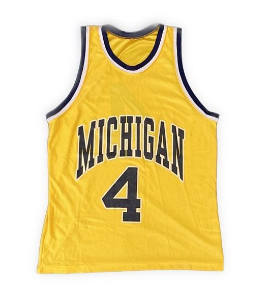 > 90's 米国製 Dodger ミシガン大学 MICHIGAN #4 バスケタンク ジャージ 紺黄 L [ta-1416]