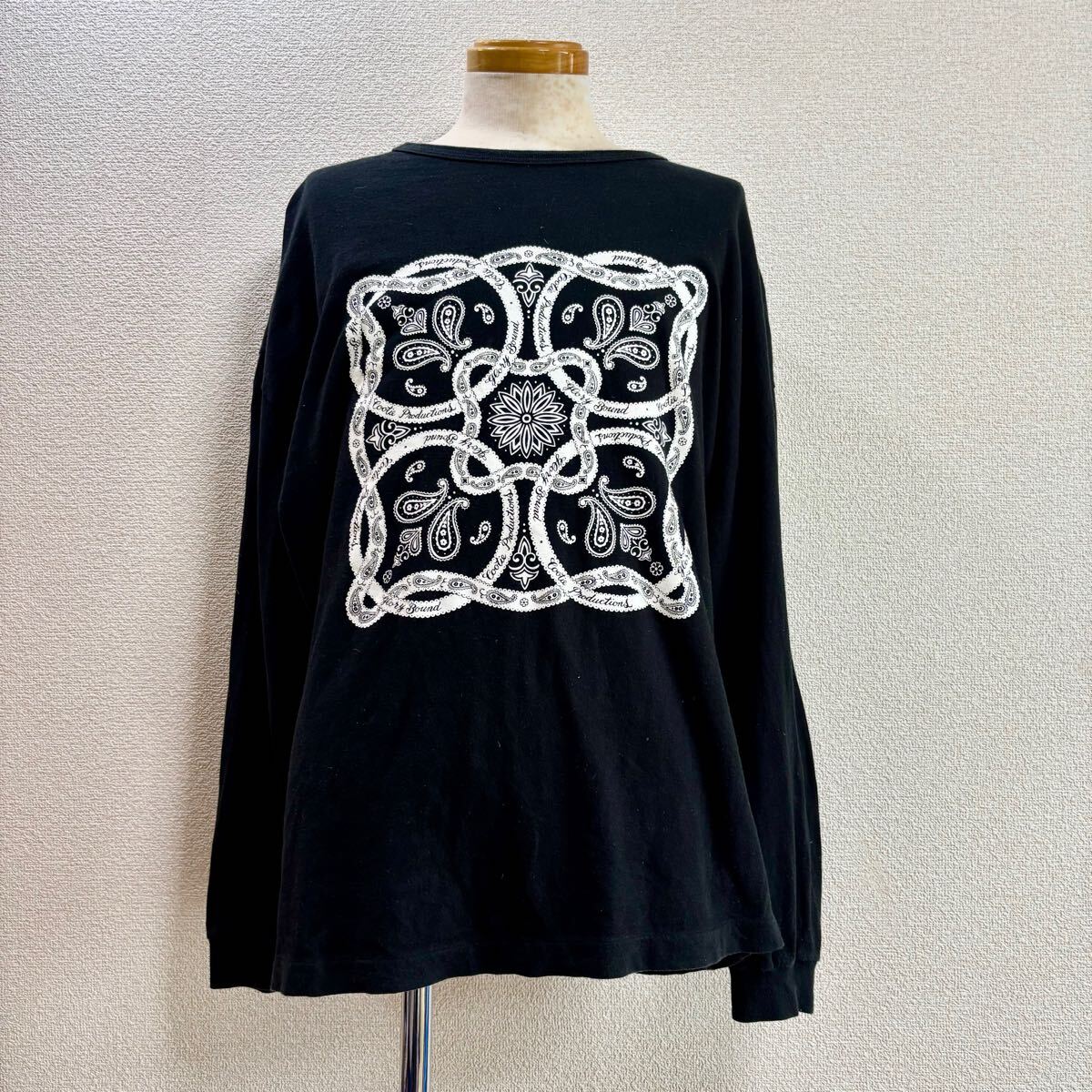 - COOTIE クーティー Tシャツ バンダナ柄 M オーバーサイズ 長袖 Tシャツ 黒 ブラック系 ペイズリー柄 両面プリント ロンT 綿100% 日本製
