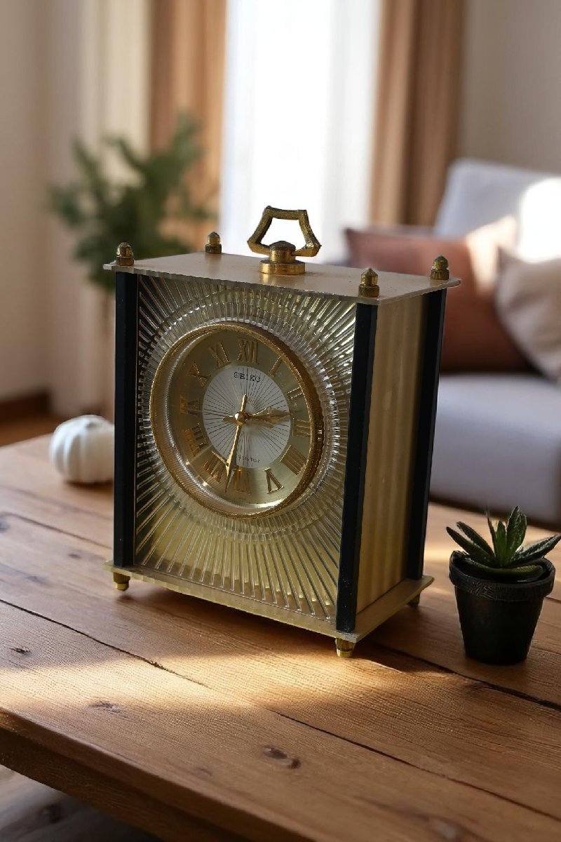 > ○SEIKO クラシカルな金色の置時計 トランジスタクロック 太陽柄 アールデコ レトロモダン ヴィンテージ 古道具のgplus広島 2506i