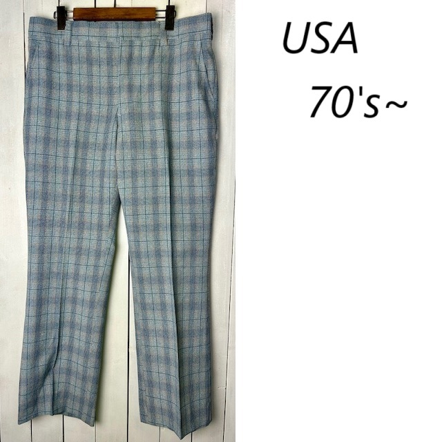 > USA古着 70s グレンチェック 薄手サマースラックスパンツ XL程度 春夏 オールド ヴィンテージ アメリカ古着 ポリ トラウザーズ ●282
