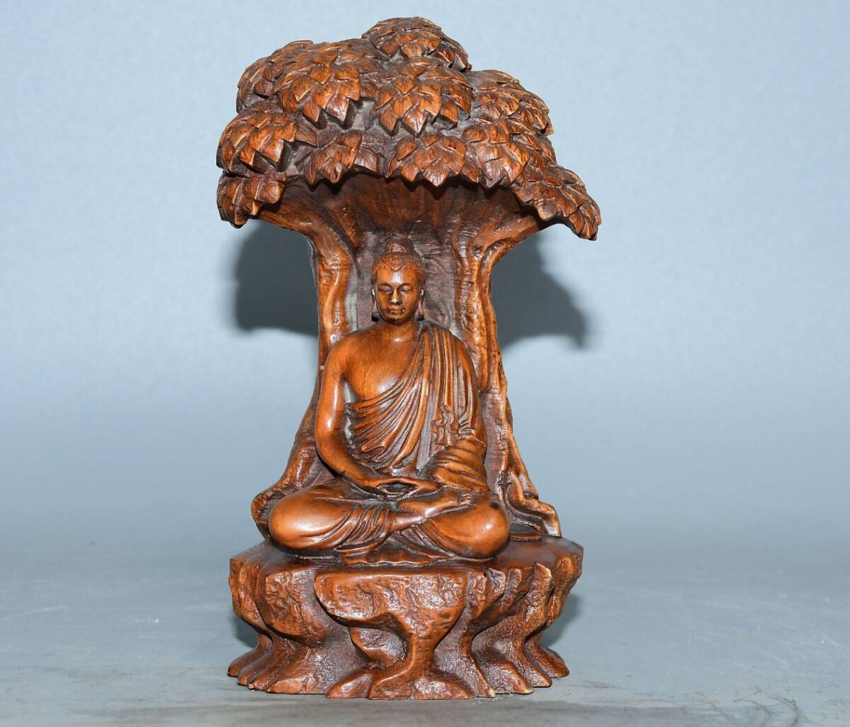 - 『館蔵珍品 黄楊木製 細密彫 松下釋迦仏 仏像 宗教 仏教古美術 供養品』稀少珍蔵品 古賞物 貴重物品 収蔵品 中国古美術 時代物 古董品