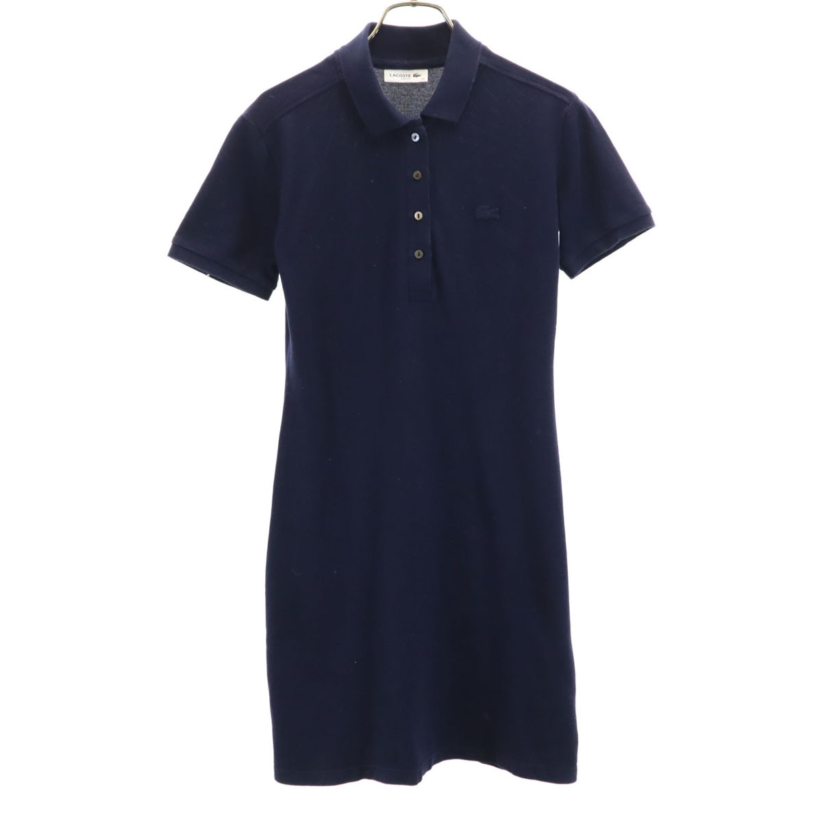 LACOSTE ラコステ 半袖 スリムフィット ポロ ワンピース 34 ネイビー 鹿の子 レディース