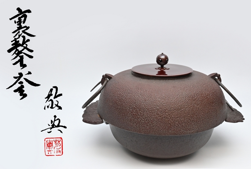 - 人間国宝 名工 高橋敬典 ■ 裏甲釜 裏釜[うらごうがま] 茶釜 [替え蓋 端立 釜鐶付] ■ 茶道具 栞 布 木箱入 ■