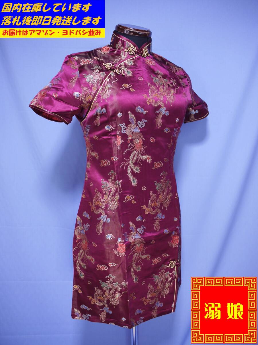 > ★サイズXL★ショート丈チャイナドレス らんま1/2 早乙女らんま シャンプー 李紅蘭 リンミンメイ(マクロス) Q02-紫龍鳳-XL