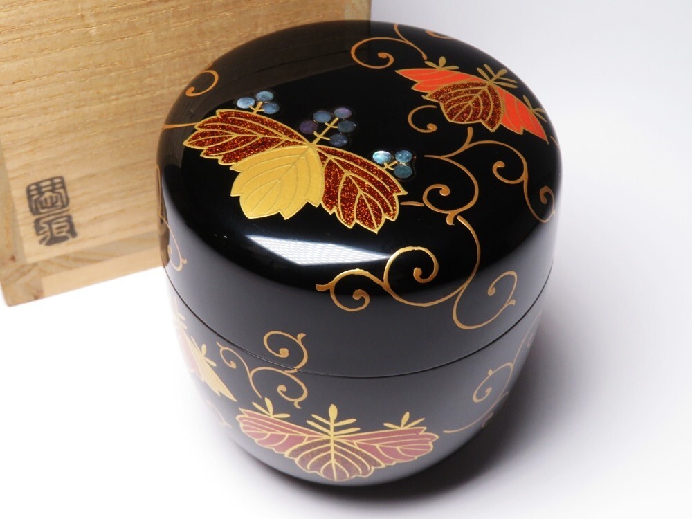 - 【10372】茶道具(木製)桐紋 蒔絵 棗 恭〇作(初品・買取品)