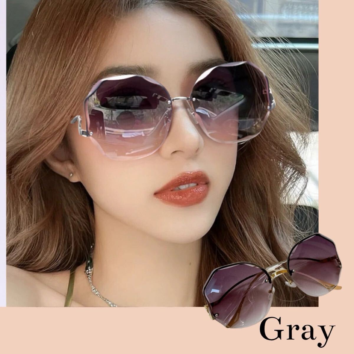 - レディース ポリゴン型 ポリゴン オクタゴン グラデーション UVカット サングラス グレー