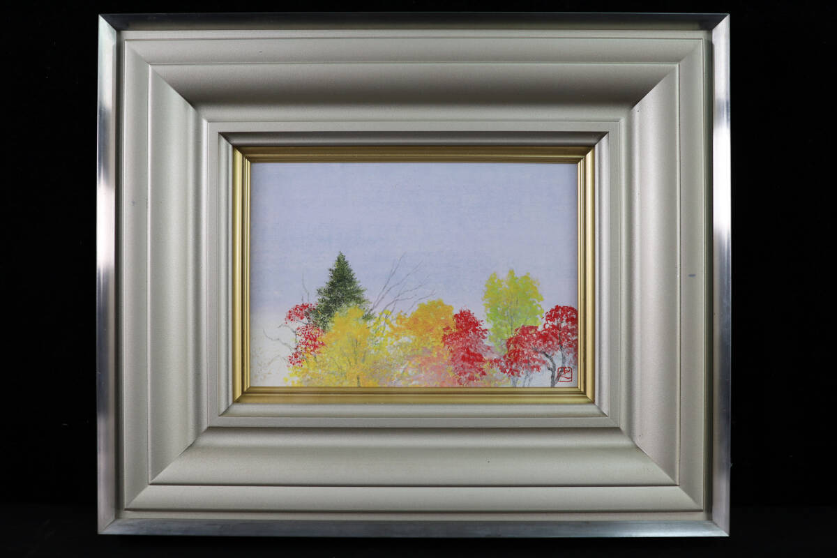 > ◇雅◇ 真作保証 篠崎之男 「彩湖」 1号 日本画 共シール 風景画 絵画 額装 日展会員 /YS.25.5 [J92] UN