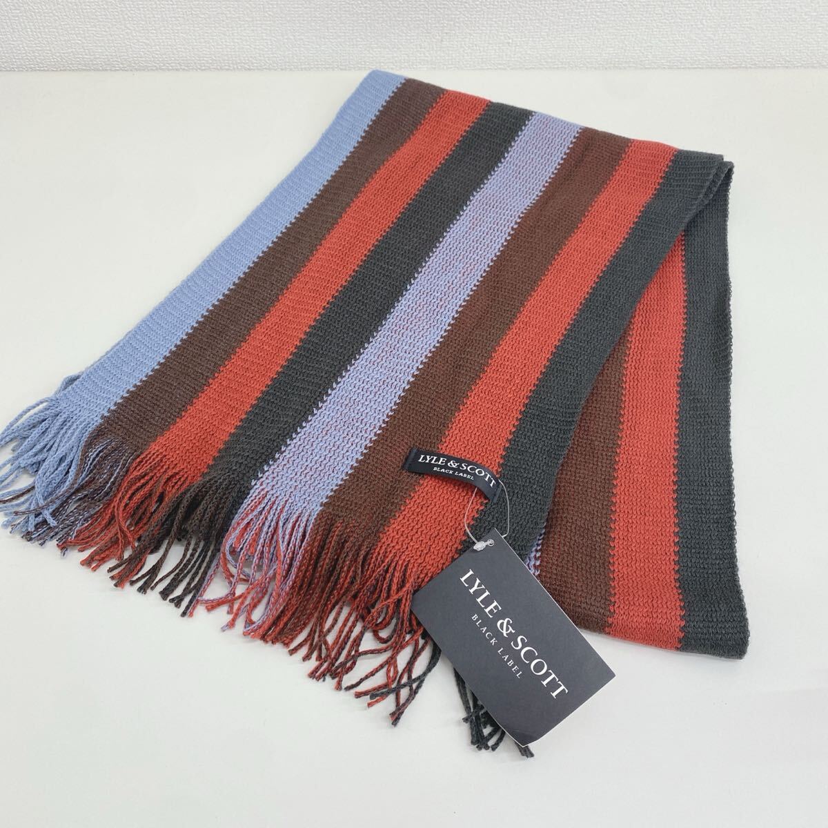 - refle● LYLE&SCOTT BLACK LABEL ストライプ ニット マフラー 男女兼用 オシャレ 現状品