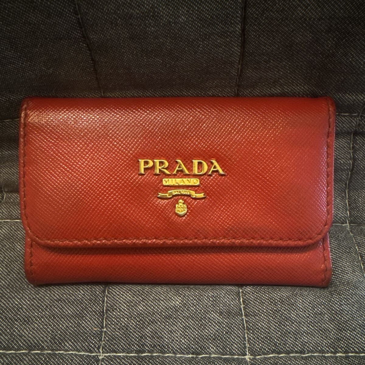 - PRADA プラダ 6連キーケース レッド ゴールド ロゴ