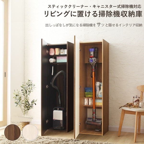 - スティッククリーナー・キャニスター式掃除機対応 リビングに置ける掃除機収納庫 ウォルナット